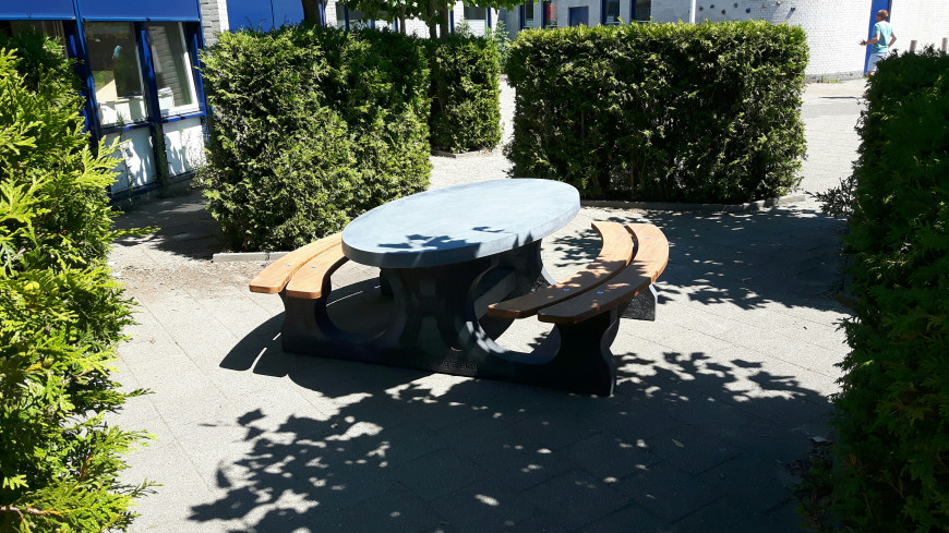 Tables de ping-pong et tables de footvolley : nous plaçons ces tables telles quelles sur le terrain sans mise à niveau. De cette manière, la hauteur de la table, mesurée par rapport à vos pieds, est la même des deux côtés. C’est un avantage, surtout lorsque les enfants jouent à la tournante. Ils n’ont alors pas à s’adapter à une différence de hauteur. En effet, si la table est installée de niveau et que le sol est en pente, la table donne la sensation d’être plus haute d’un côté que de l’autre.
